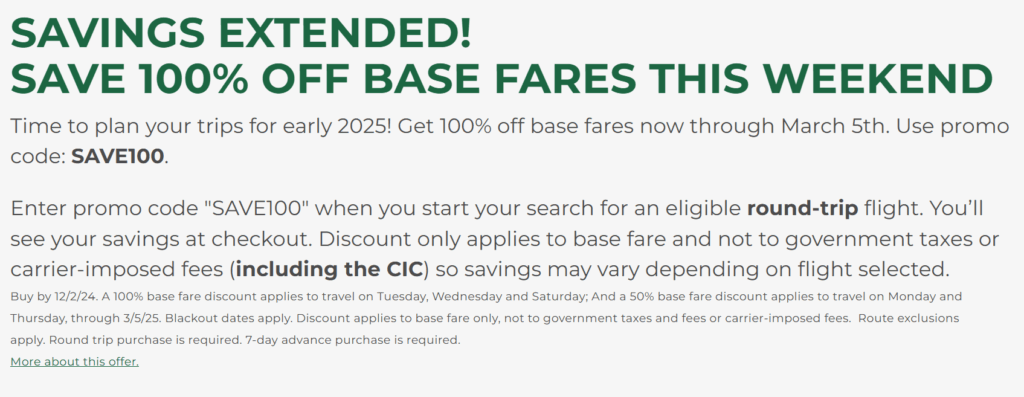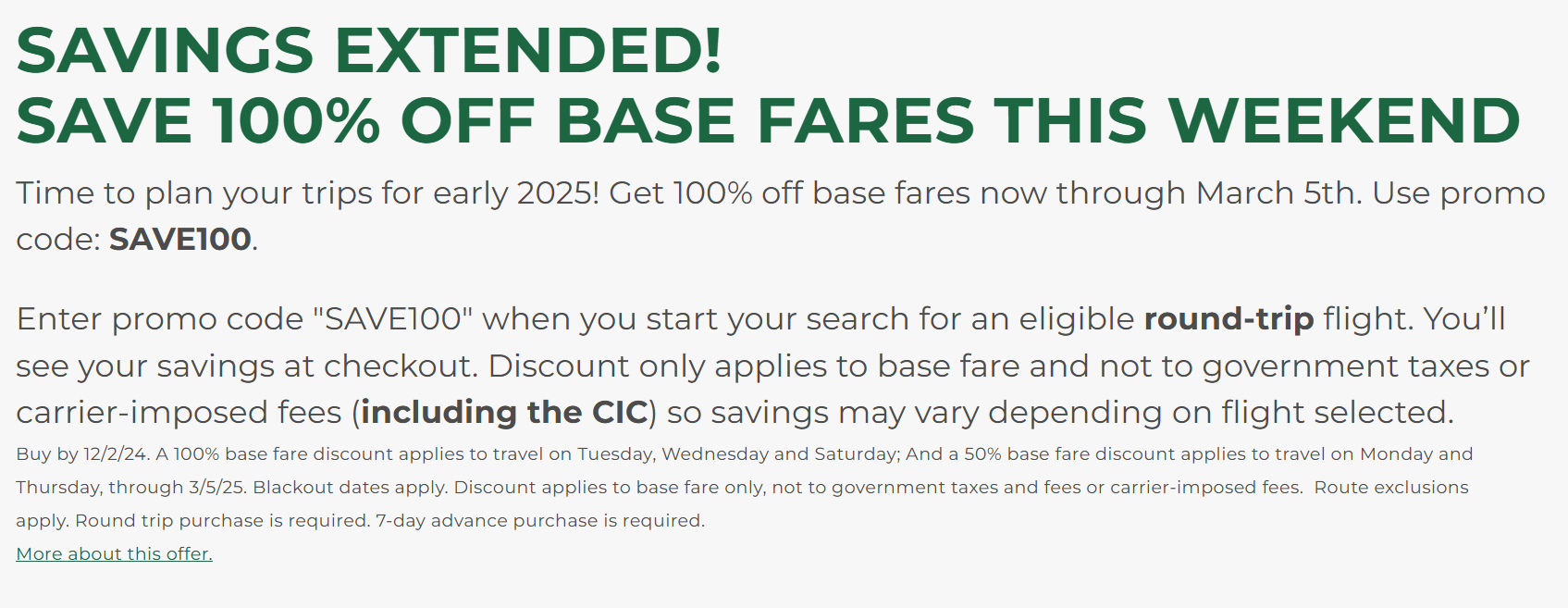 - Discount applies to base fare only, not to government taxes and fees or carrier-imposed fees.