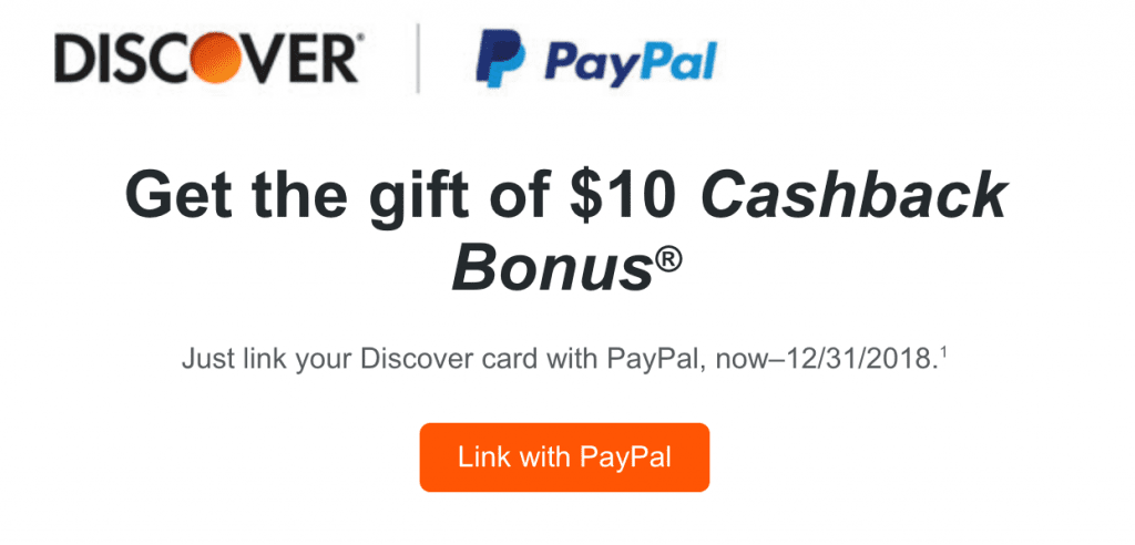 - Get a $10 Cashback Bonus when you link your Discover card to Paypal.
