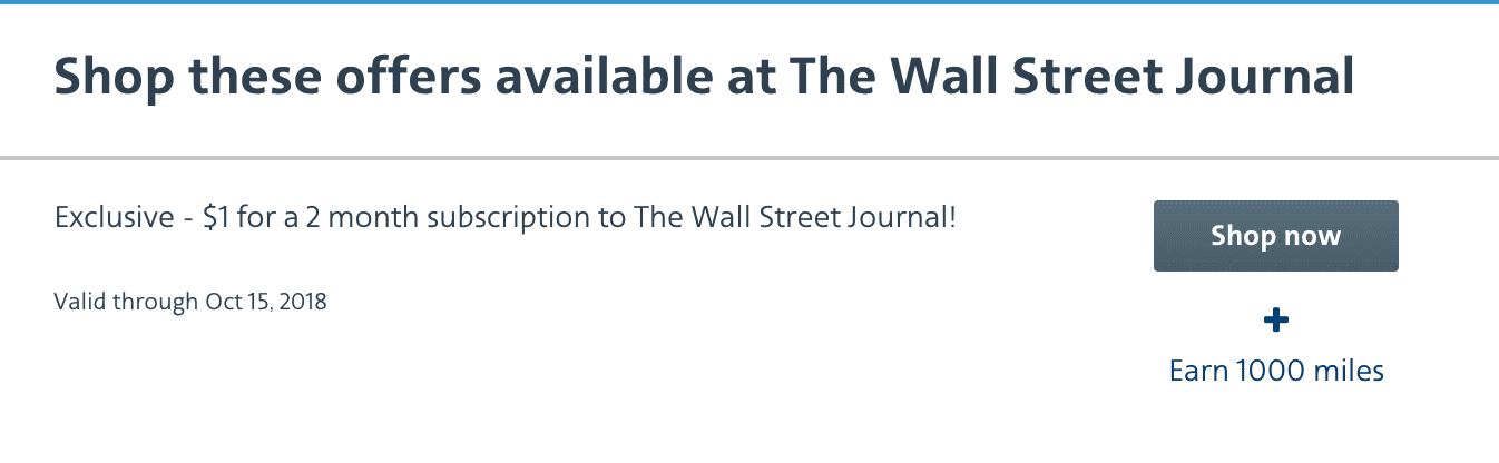 - The American AAdvantage shopping portal is offering 1,000 bonus miles when you shop through the portal to purchase a $1 2-month Wall Street Journal subscription.