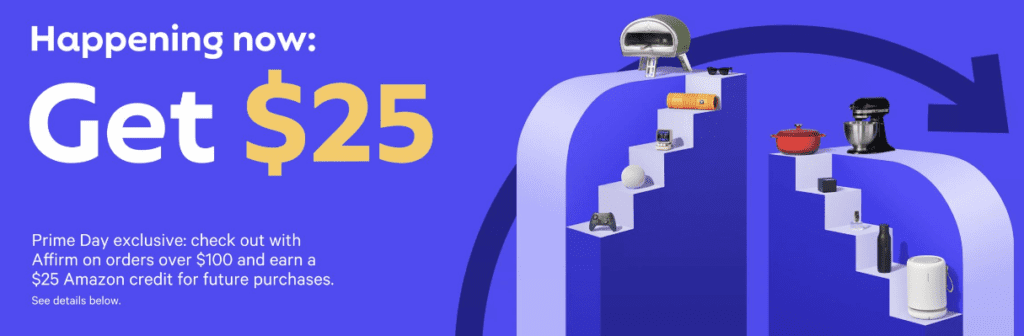 - They are also offering a $25 Amazon credit when you checkout with Affirm on Prime Day for an order $100 or more.