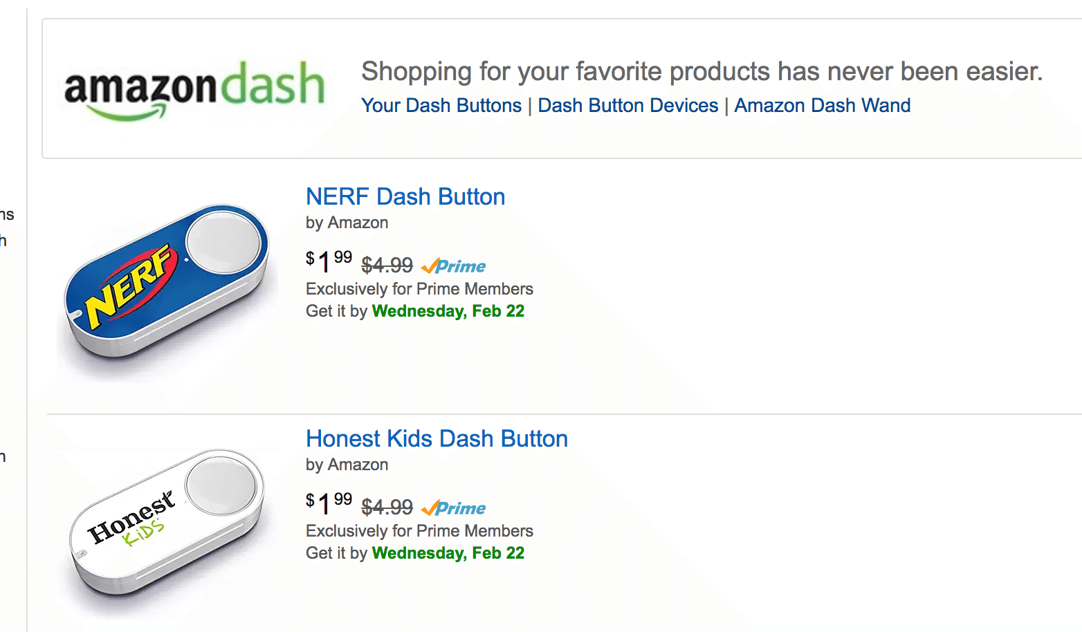 Note that many Dash buttons for things like Tide and Charmin are not on sale – those cost the standard $4.99. It’s only select buttons that have the $1.99 price.