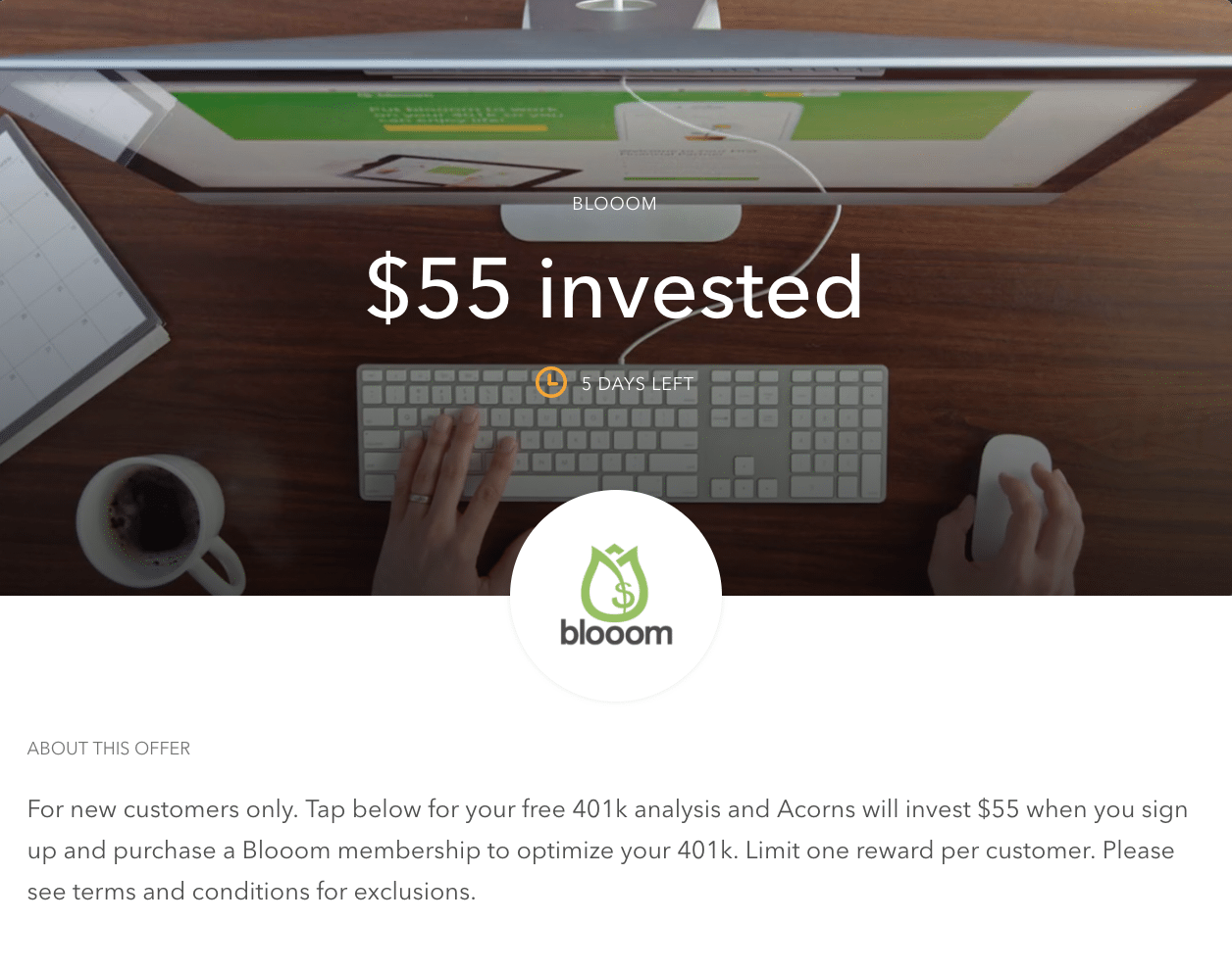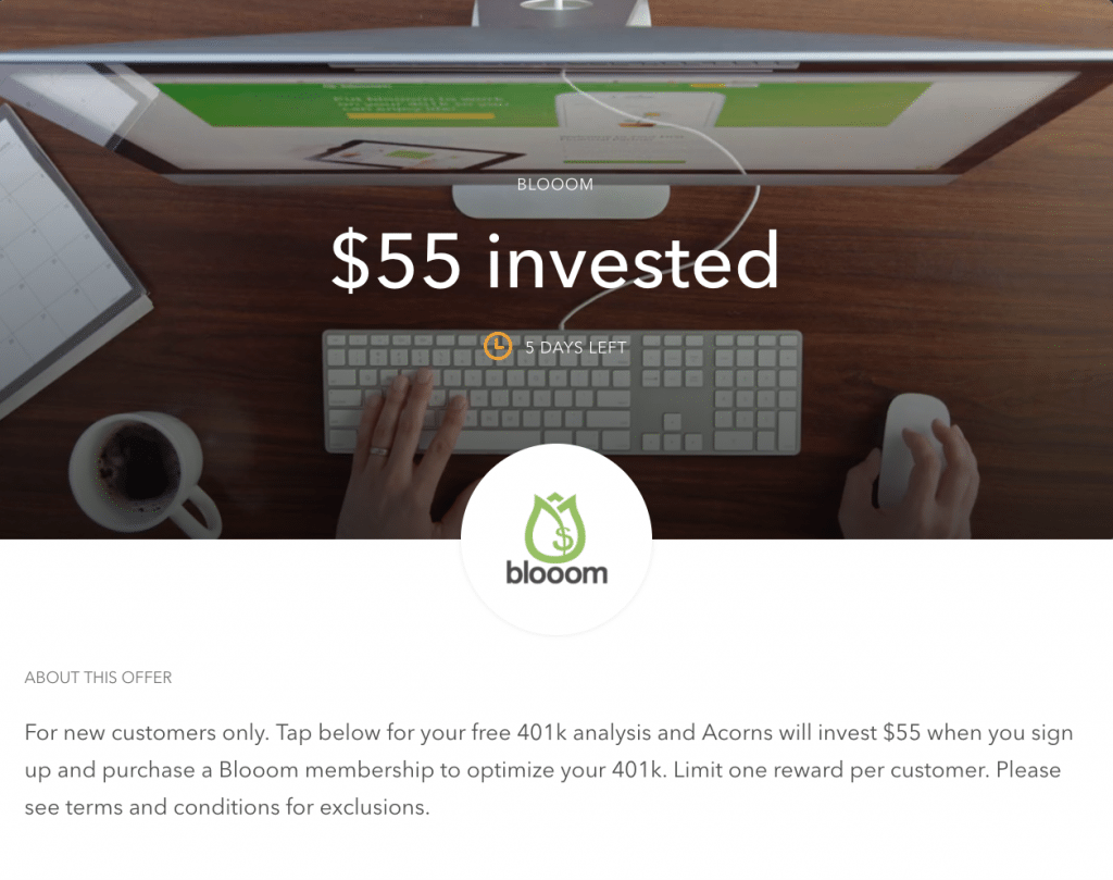 This deal has expired, view more Acorns deals here or more Blooom deals here.