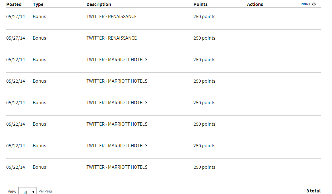 The easiest way to earn these points is to  follow on twitter participating properties and earn 25 points per property. This means you’d need to like 80 properties per thirty day period to earn the maximum amount of points on offer.  Here is a list of different accounts that qualify for this promotion: