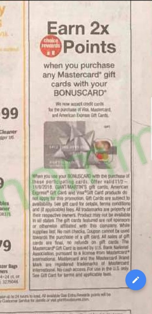 - Get 2x fuel points on the purchase Mastercard gift cards.