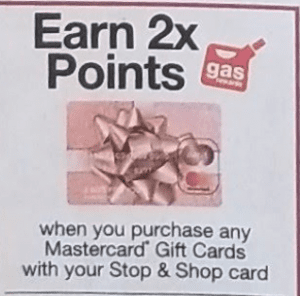 - Get 2x fuel points on the purchase Mastercard gift cards.