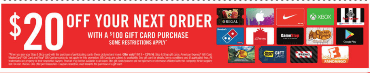 - Buy $100 in merchant gift cards and get a $20 voucher toward your next shopping trip