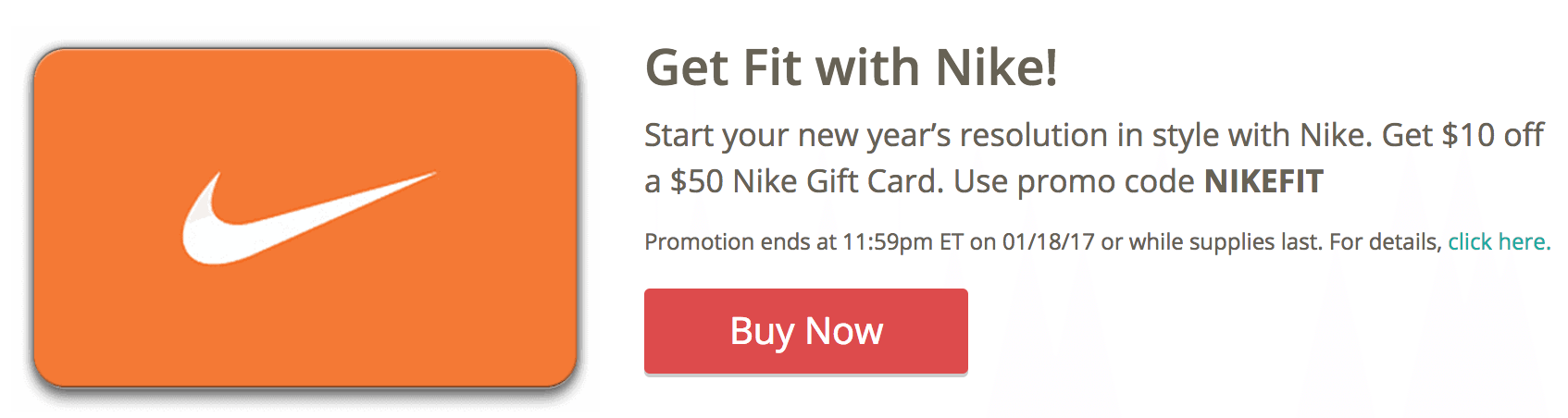 - Buy a $50 Nike e-gift card for just $40 from Gyft with promo code:Â NIKEFIT