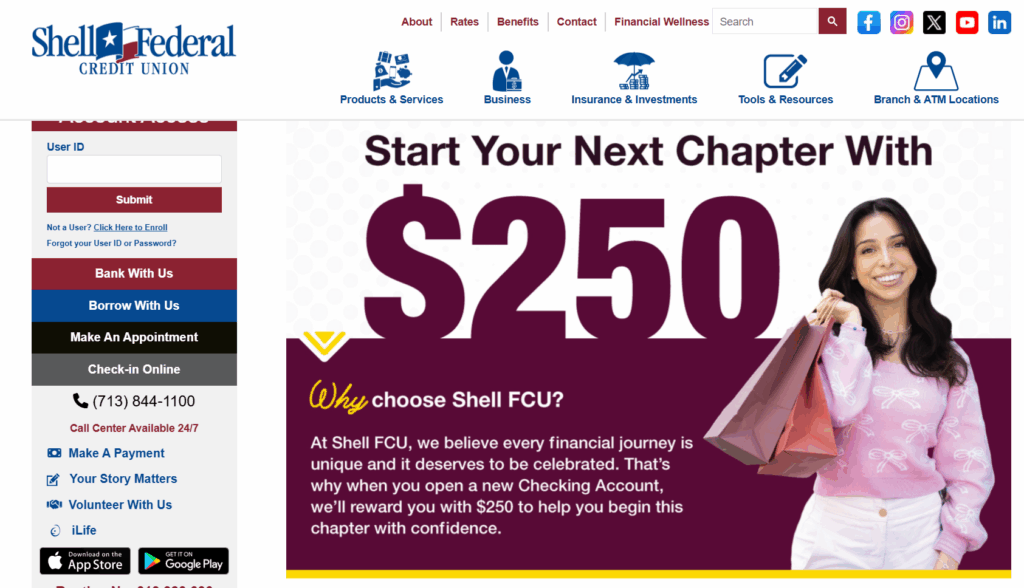 - Shell FCU is offering a $250 bonus when you open a new checking account and complete the following requirements: