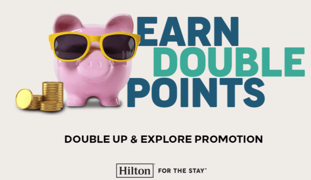 - Offer valid for stays completed January 1 – April 30, 2023 (“Promotion period”) at any hotel or resort within the Hilton Portfolio. Hilton Honors™ members must first register at HiltonHonors.com/DoubleUpAndExplore prior to completing a stay within the Promotion period.