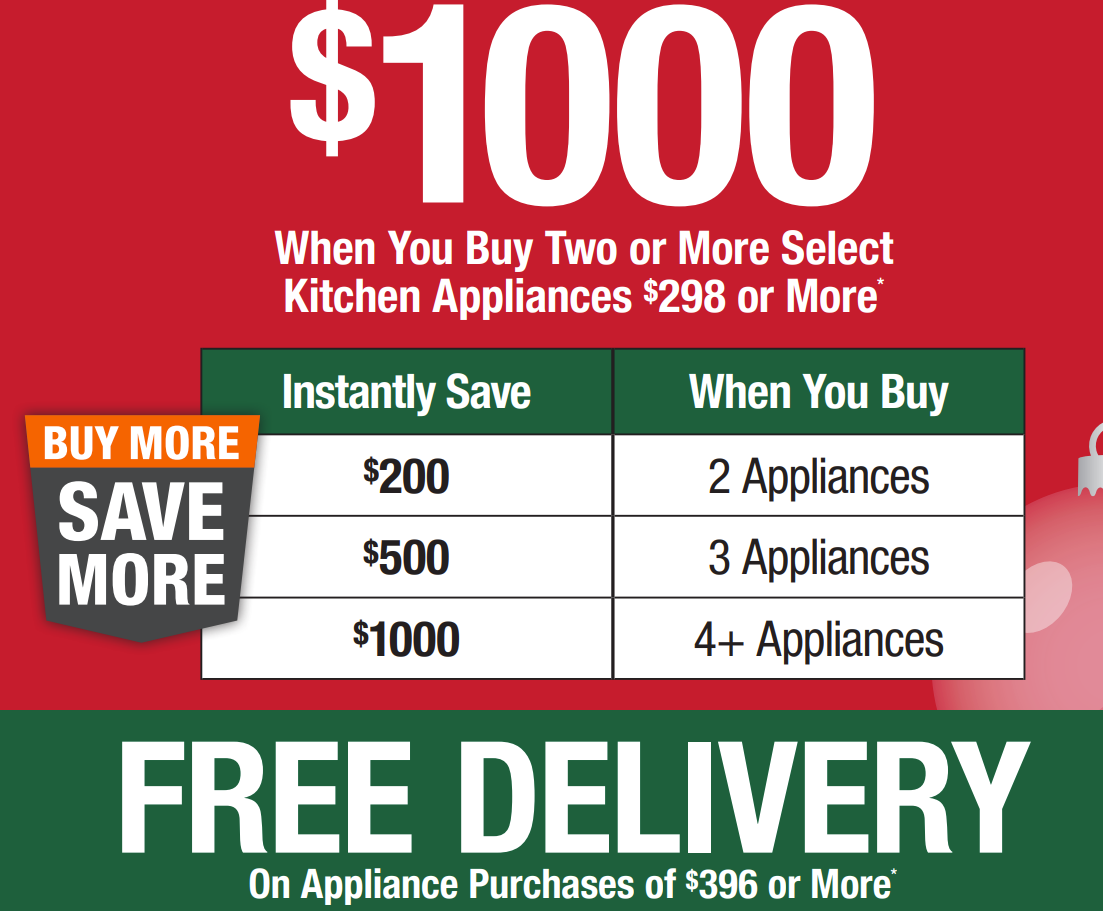 - Home Depot is offering up to $1,000 off when you buy appliances.