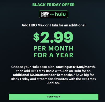 - Get 12 months of HBO max for $2.99 per month for 12 months as an add on for Hulu. Offer valid until Offer valid through December 1, 2025
