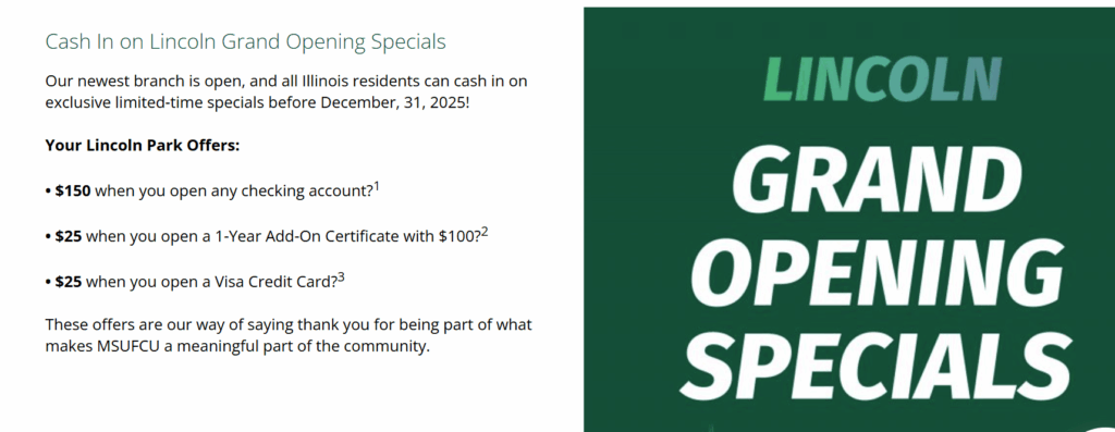 - MSU Federal Credit Union is offering a $150 bonus when you open a new checking account (no other requirements for bonus)
