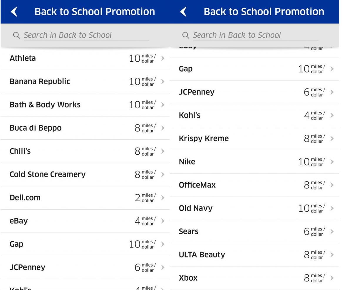 eBay at 4x is excellent, Nike and Gap brands at 10x is too. Check through the list to see if there’s one that interests you.