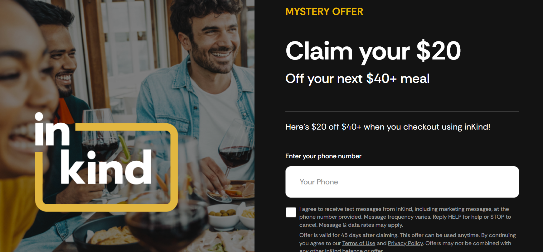 - inKind is offering $20 off $40+ when you enter your phone number