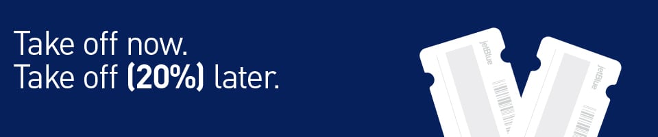 - JetBlue is offering 20% off the base fare of a future flight after you book a flight by August 6th and fly before August 31st. You will receive the promo code by 9/20/18 and it’s valid from 9/25 until 10/31. You can get up to 7 promo codes (one per reservation)