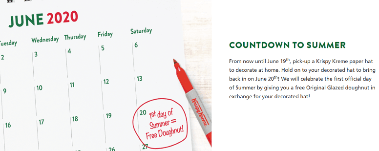 - Krispy Kreme is offering a free doughnut when you decorate a hat and bring it back in on June 20th, 2020