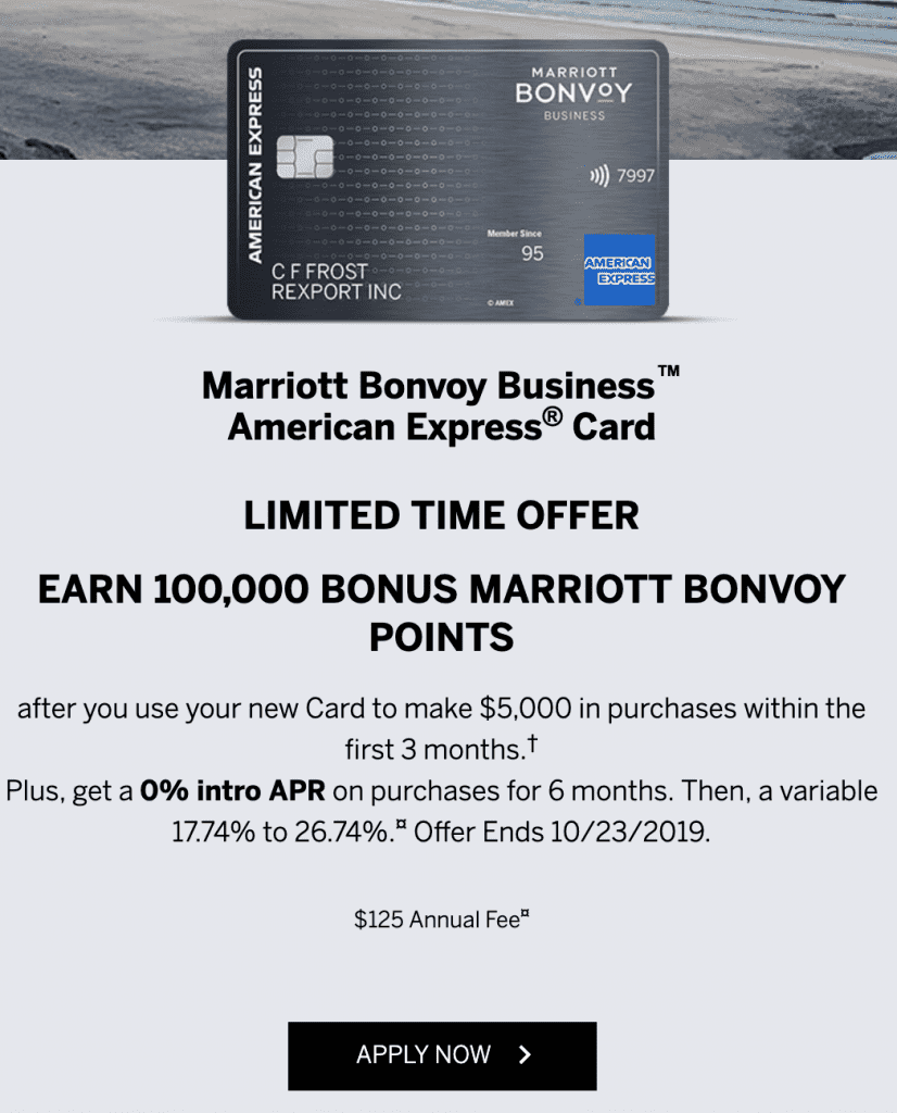 - American Express is offering a sign up bonus of 100,000 points on the Marriott Bonvoy American Express Business Card after spending $5,000 within 3 months.