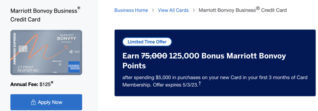 - American Express is offering a sign up bonus of 125,000 points on the Marriott Bonvoy Business Card after spending $8,000 within 6 months.