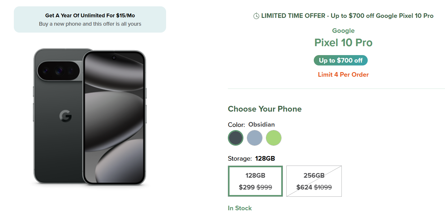 - Mint Mobile is offering a 128GB Pixel 10 Pro Smartphone + 1-Yr Unlimited Plan For $479