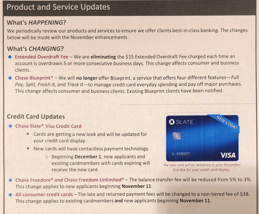 Chase sent out a memo to bankers with five changes coming to their various banking and credit card products (image at end of post):