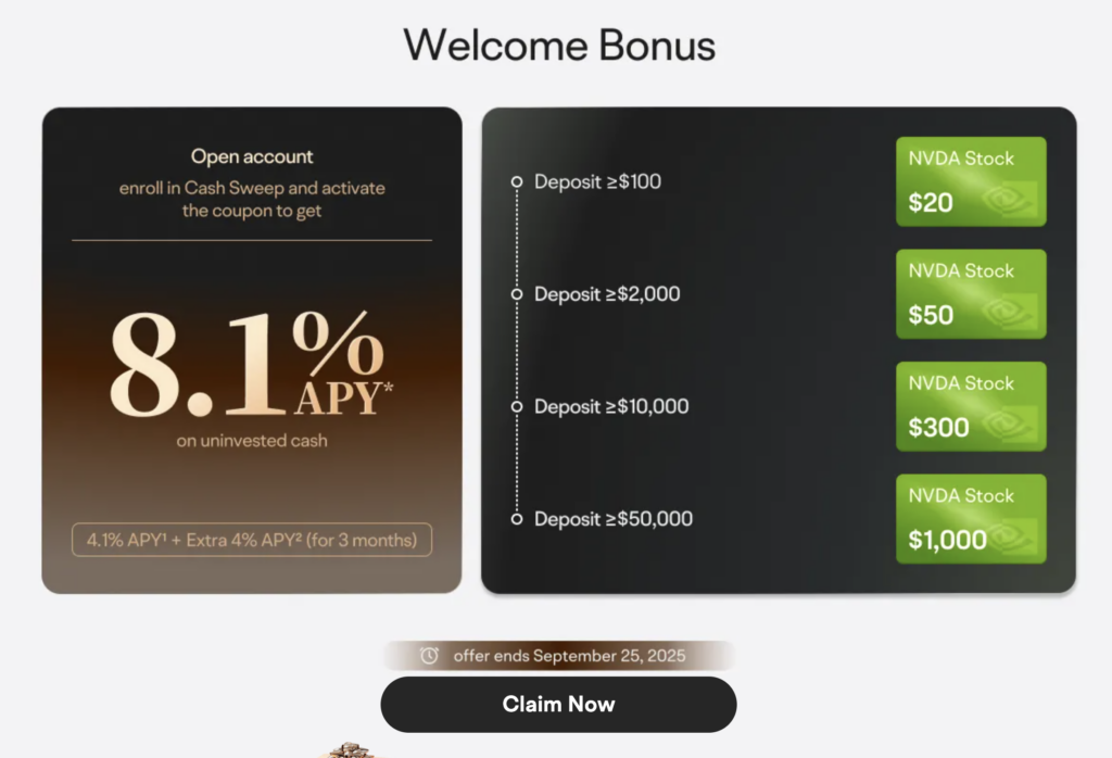 Update 9/19/25: All three offers ($1k NVDA, 8.1% APY, 3% match) have been extended through 12/31/25.