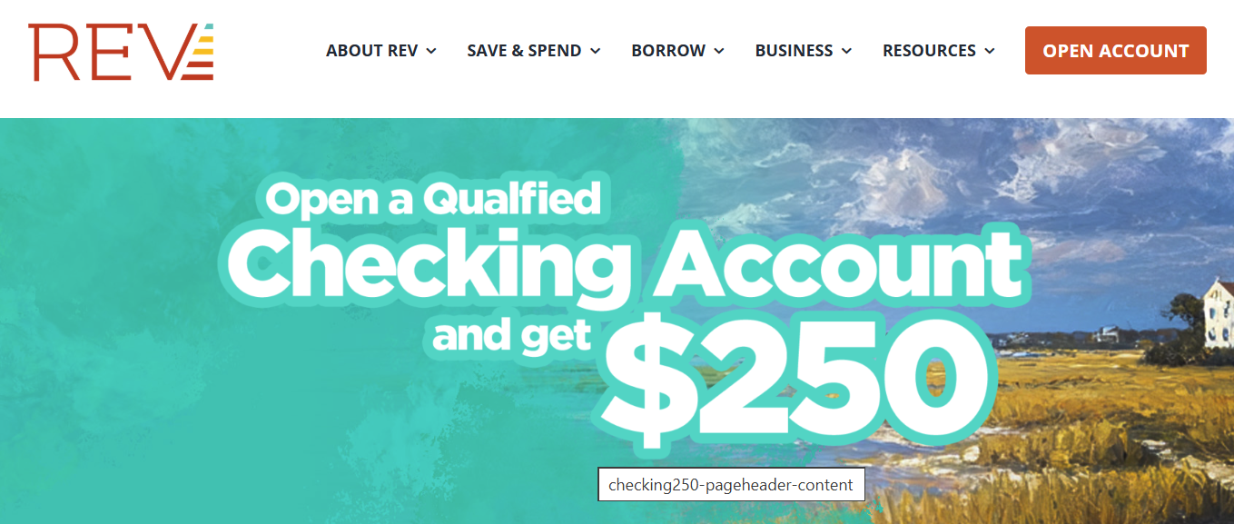- REV Federal Credit Union is offering a $250 bonus when you open a new checking account and complete the following requirements: