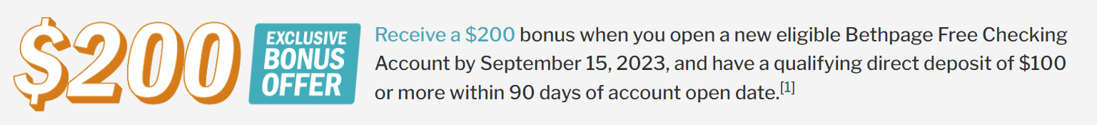 - Bethpage is offering a bonus of $200 when you open a new free checking account and complete the following requirements: