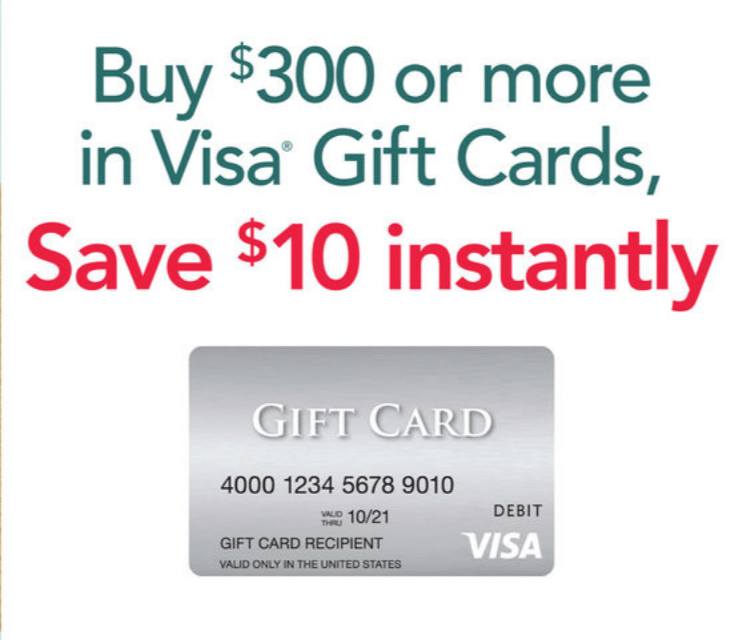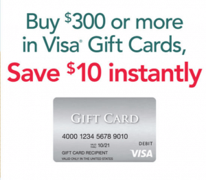 - Buy $300 in Visa gift cards at Office Depot/Max and get a $10 instant discount