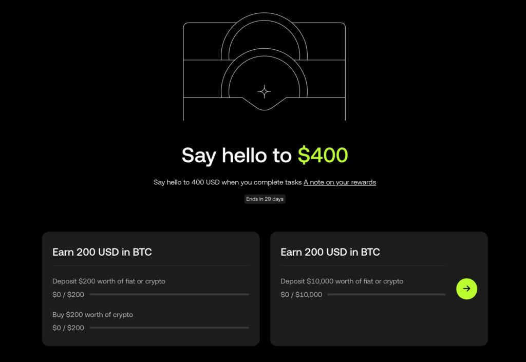 - Both $200 awards are issued in BTC, with the reward locked for 30 days. During this period, the crypto is placed in the user’s locked balance. The BTC amount is calculated based on the price at the time of issuance.