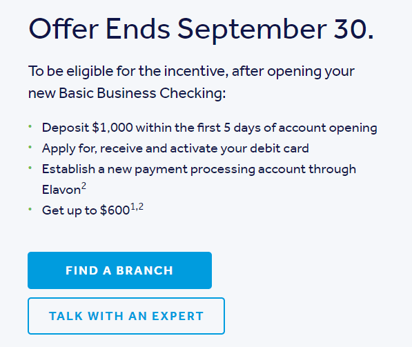 - To qualify for the $300 incentive, a new Basic Business Checking account must be funded with a $1,000 balance within the first 5 business days of account opening. Account must be opened between July 1, 2021 and September 30, 2021.