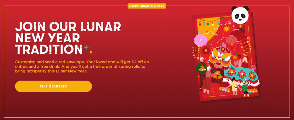 - Panda Express is offering a free small order of egg rolls when you send a friend a digital card (loved one will get $2 off an entree and a free drink)