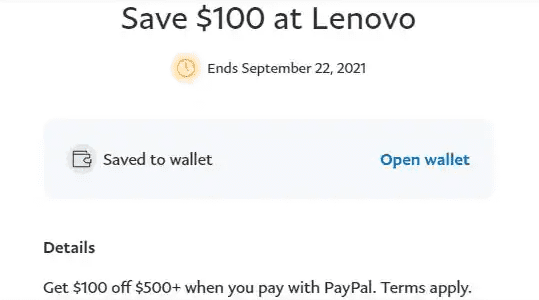 - PayPal is offering $100 off $500 at Lenovo.