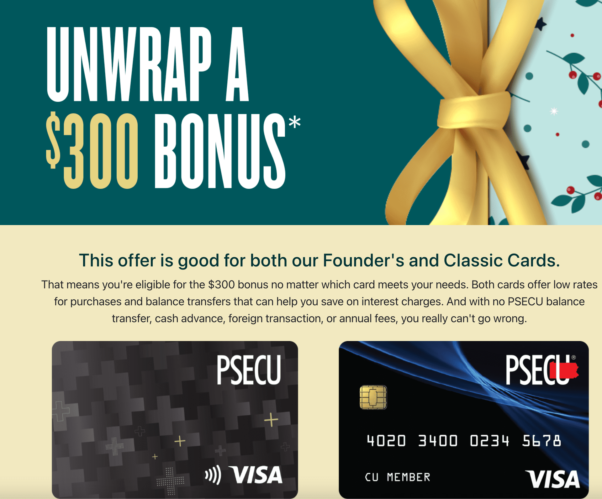 - PSECU is offering a $300 cash signup bonus on both their Founder’s and Classic credit cards after you spend $900 within 90 days.