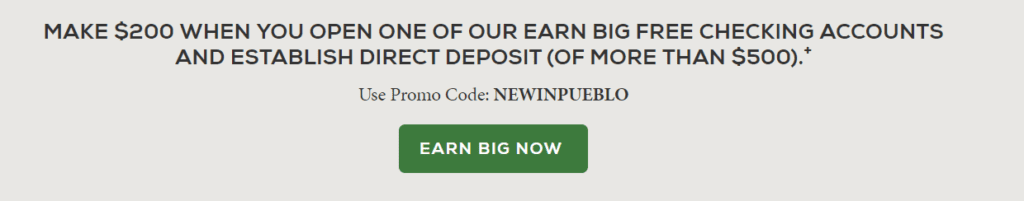 - Premier Members Credit Union is offering a bonus of $200 when you open a new earn big free checking account and establish a direct deposit of $500+ within 30 days of account opening and use the promo code NEWINPUEBLO