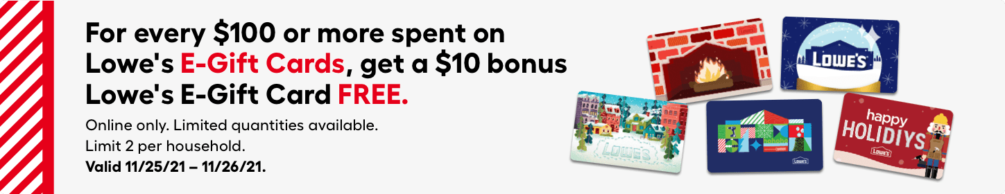 - Lowe’s is offering a $10 bonus giftcard when you purchase a $100 Lowe’s giftcard