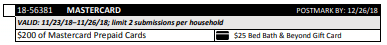 - Purchase a $200 Mastercard Giftcard at Bed Bath & Beyond and receive a $25 Bed Bath & Beyond Giftcard when you complete the rebate form