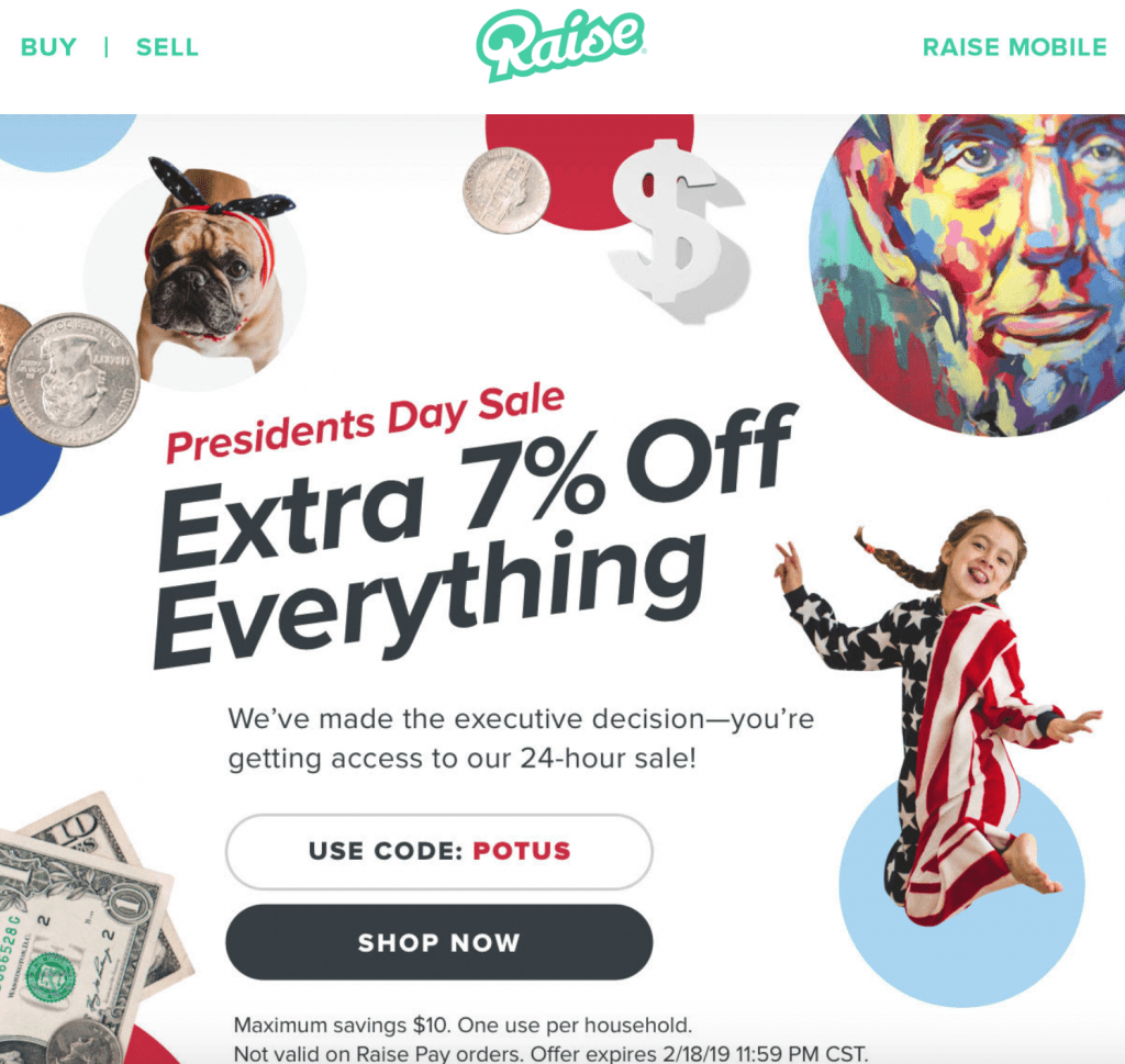 - Raise is offering 7% off sitewide with promo code POTUS.