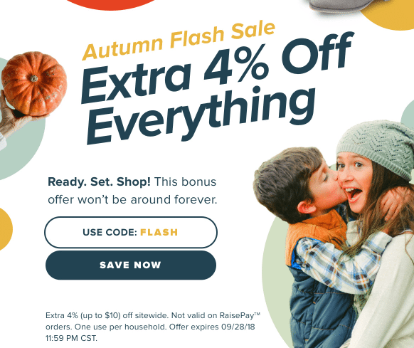 - Raise.com is offering 4% off sitewide with promo code:Â FLASH