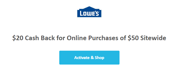 - Get $20 Cash Back for Online Purchases of $50 Sitewide at Lowe’s