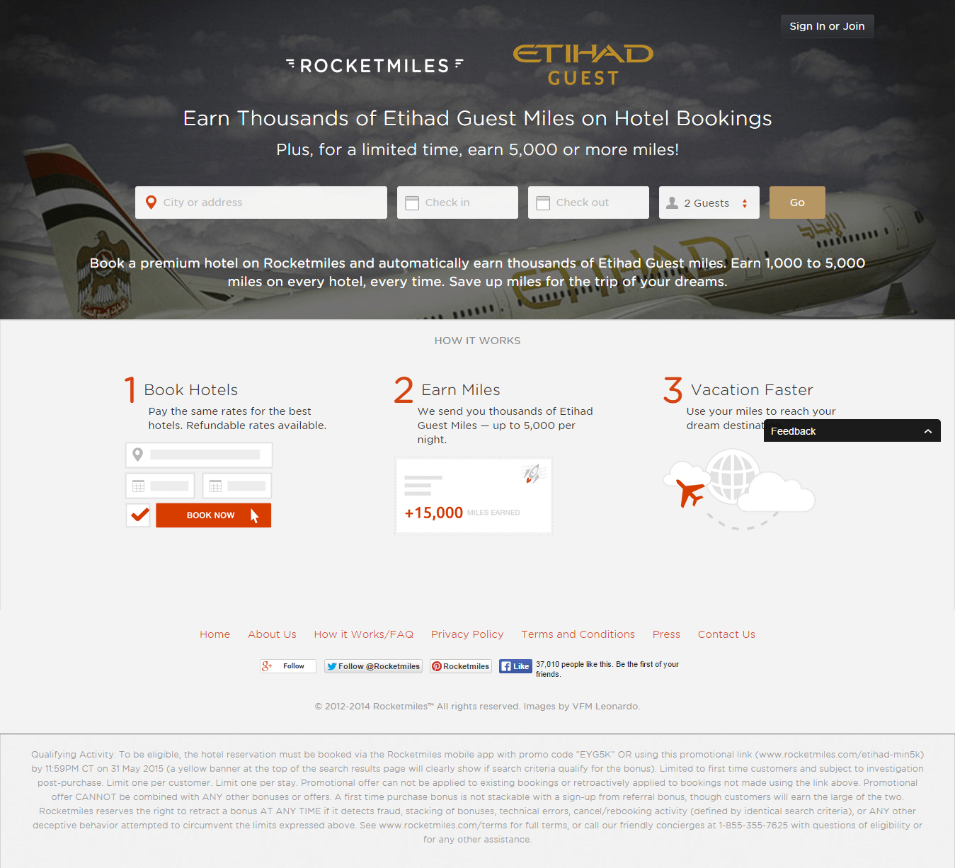 - Receive 5,000 Etihad Guest Miles for your first booking with Rocketmiles (hotel booking website). In addition to any miles the booking would normally receive (1,000 point minimum)