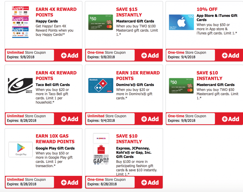 - 4x fuel points on Happy Gift Cards, expires 9/8/18.