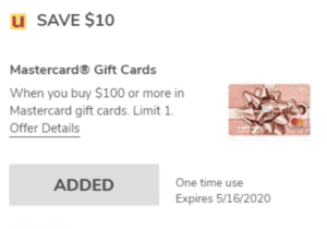 - $10 off instantly when you buy $100 ore more in Mastercard gift cards.