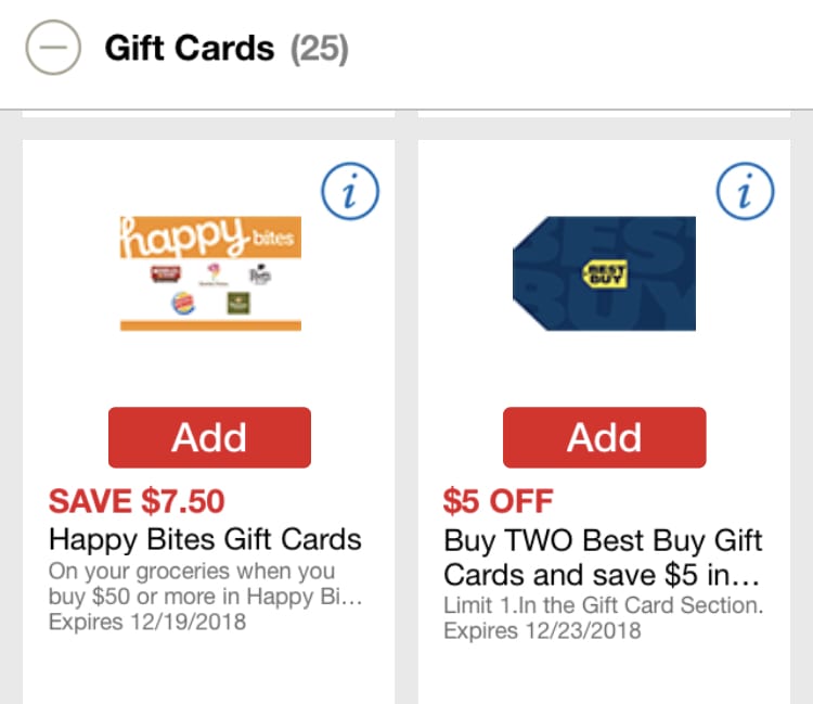 - You can also get $5 off when you purchase two or more Best Buy gift cards. This one is targeted