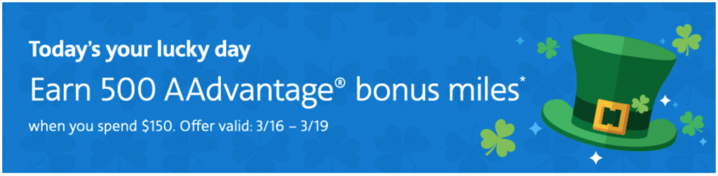 - Get 500 bonus American Airlines miles by shopping $150 using their portal on March 16 – 19, 2018.