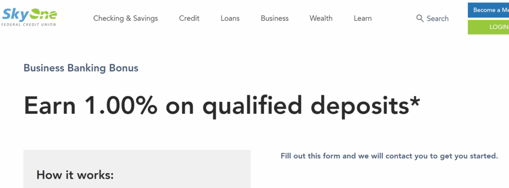 - The Business Banking Bonus Offer is available to new and existing business members of SkyOne Federal credit Union who meet the eligibility criteria described below.