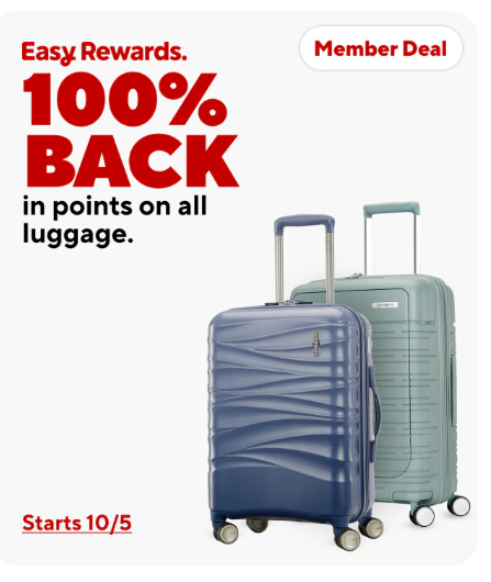 - Staples is offering 100% back in Staples rewards on luggage starting 10/5