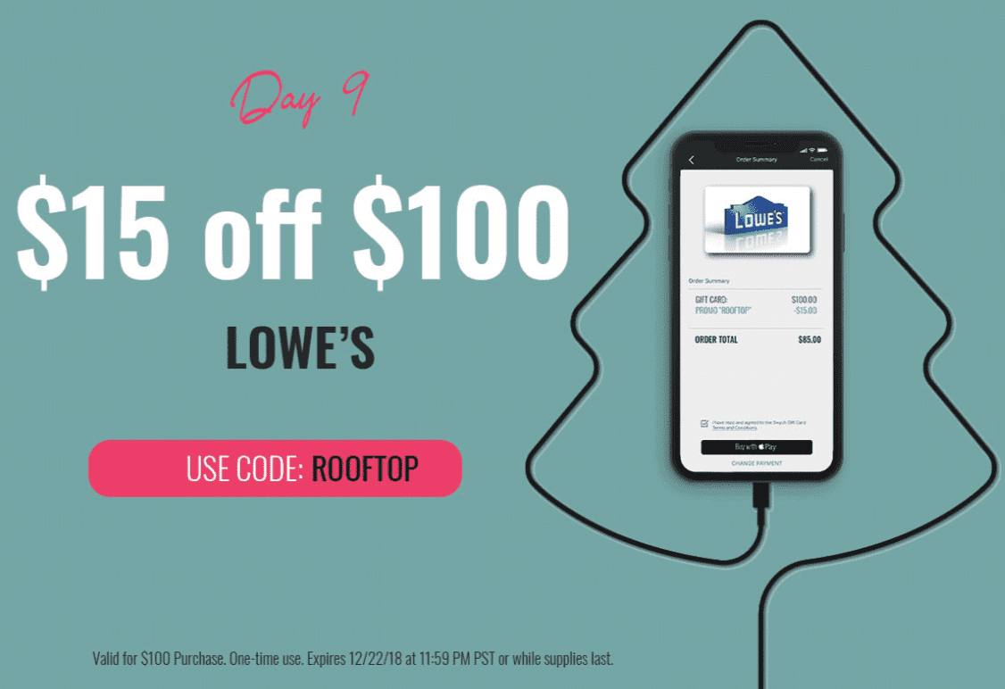 - Swych is offering $100 Lowe’s digital gift card for $85 with promo code ROOFTOP.