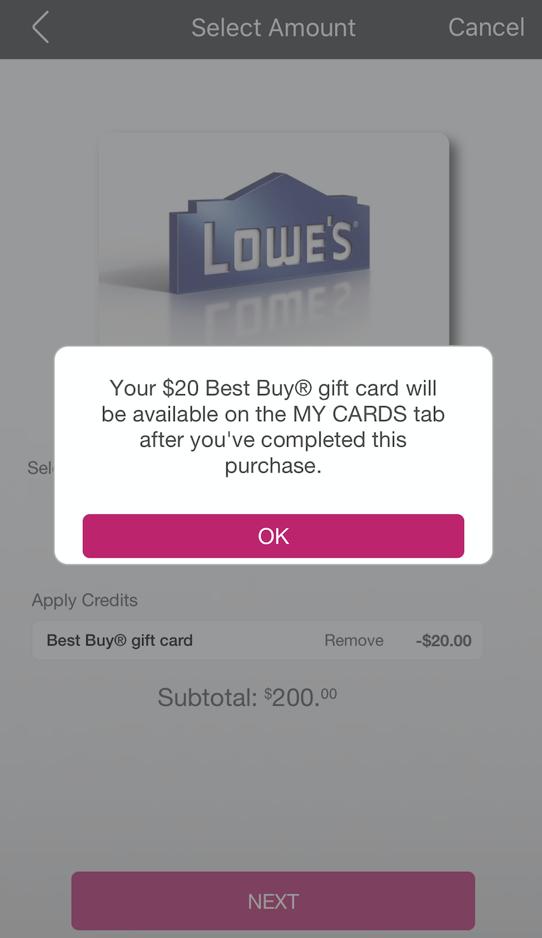 - The Swych app is offering a free $20 Best Buy digital gift card with the purchase of a $200 Lowe’s digital gift card when using promo code: fun4dad