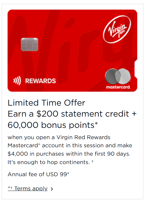- Synchrony Virgin Red is offering 60,000 points and a $200 statement credit after $4,000 in spend within the first three months. Valid until 12/12/25