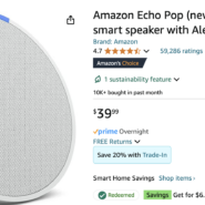Amazon is offering the Echo Pop For $6.99 With Promo Code ECHOPOP. Others are getting an offer for $14.99 with promo code POP25. Read More →
